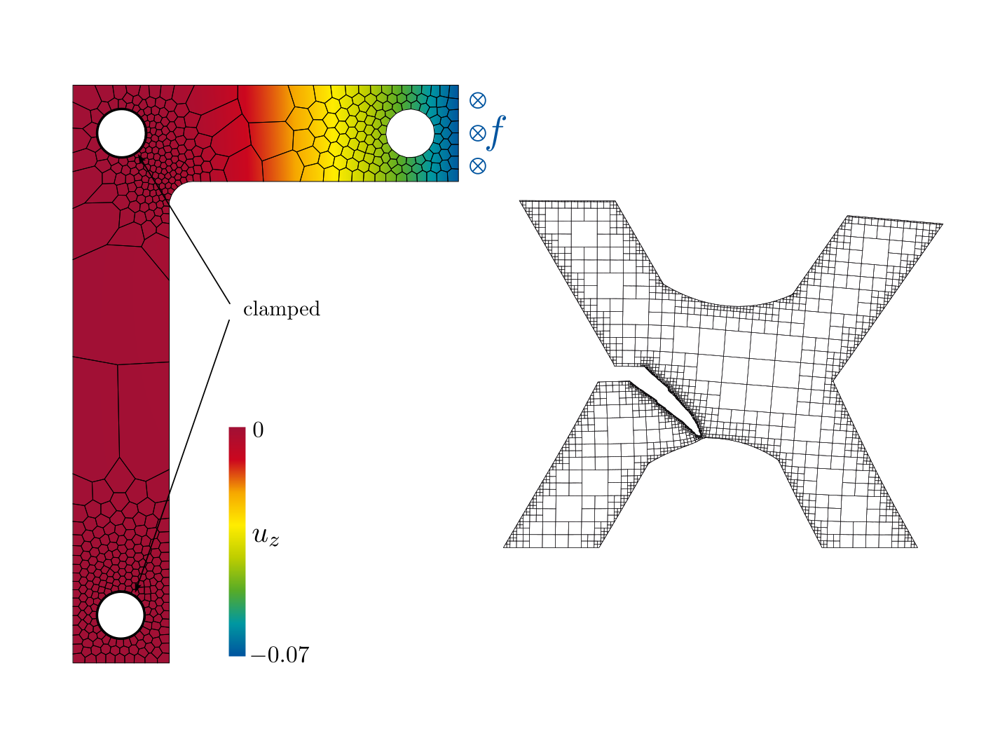 Dieser Beitrag beschäftigt sich mit Finite-Elemente-Analysemethoden, welche die Flexibilität polygonaler Netze nutzbar machen. Diese ermöglichen hochgradig lokalisierte Netzverfeinerung, die Behandlung von hängenden Knoten, unterschiedliche Elementformen innerhalb desselben Netzes und einfache Neuvernetzung für sich verändernde Gebiete. Diese Vorteile werden an Rissausbreitungsproblemen bei Scheibenbauteilen und für die Analyse von Platten diskutiert.