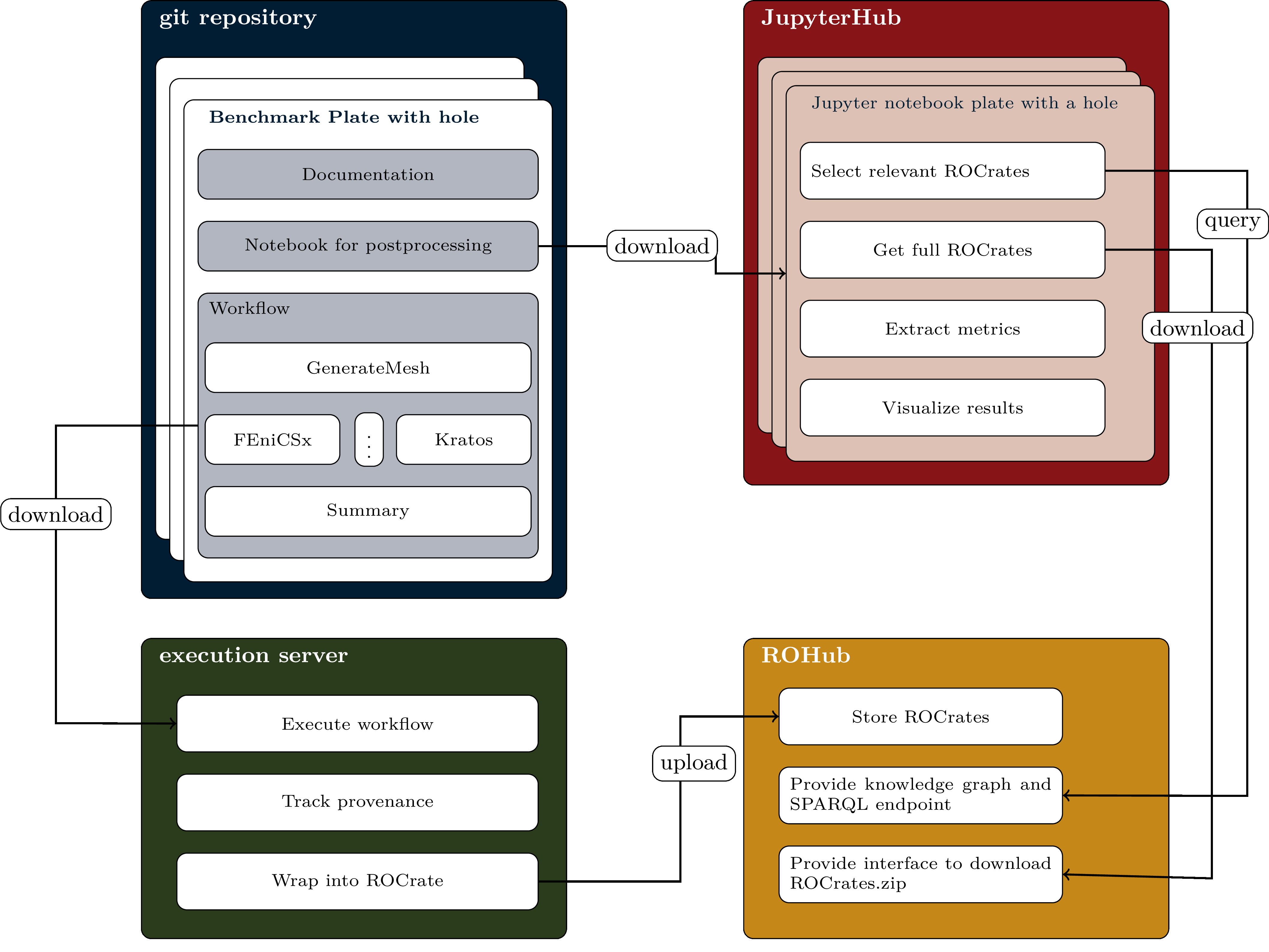 Die Nutzung komplexer, nichtlinearer Simulationsverfahren in sicherheitsrelevanten Bemessungsaufgaben erfordert eine fundierte Validierung der Modelle und Verifikation der Implementierung. Vorgestellt wird ein Konzept für eine Benchmarking-Plattform, die softwareunabhängige maschinenlesbare Modellbeschreibungen, reproduzierbare Workflows, dezentrale Veröffentlichung via ROHub und Auswertungen über einen JupyterHub kombiniert.