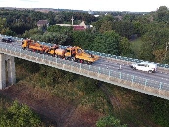 An der 358 m langen, siebenfeldrigen Flossgrabenbrücke wurde ein dreitägiger Versuch zur Strukturüberwachung (SHM) unter Betriebsbedingungen durchgeführt. Reversible Strukturänderungen wurden durch LKW an verschiedenen Positionen realisiert, während eine Fahrspur geöffnet blieb. 56 Sensoren erfassten Beschleunigungen. Mit der State Projection Estimation Error (SP2E) Methode konnten die induzierten Änderungen erfolgreich lokalisiert werden.